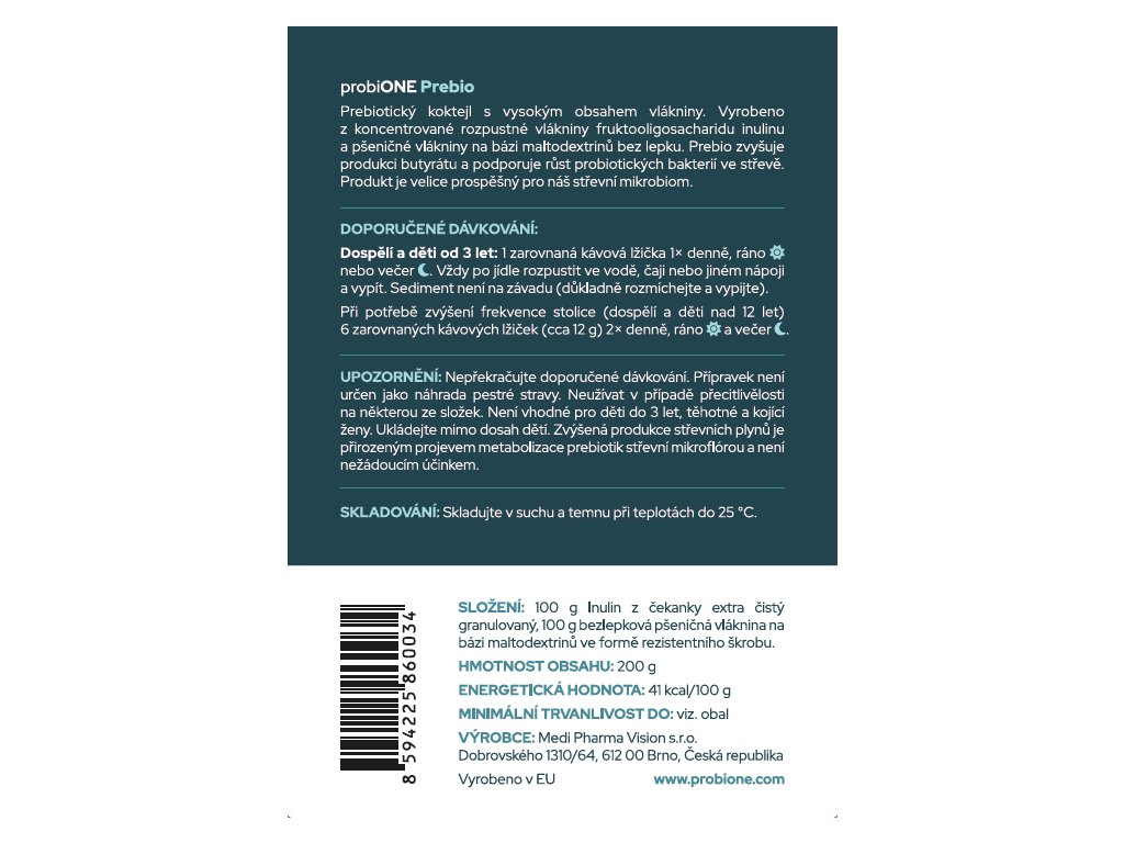 Oligosacharid inulin představuje prebiotickou rozpustnou vlákninu (FOS *), která dokáže podpořit probiotickou střevní mikroflóru zejména tzv. bifidogenního typu jako fyziologickou součást organismu. Rezistentní vláknina z pšenice zvyšuje produkci butyrátu a také podporuje růst přátelské střevní mikroflóry. Čekankový inulin přispívá k normální funkci střev zvýšením frekvence stolice. Jednoduše lze říci, že prebiotika jsou potravou pro probiotika.