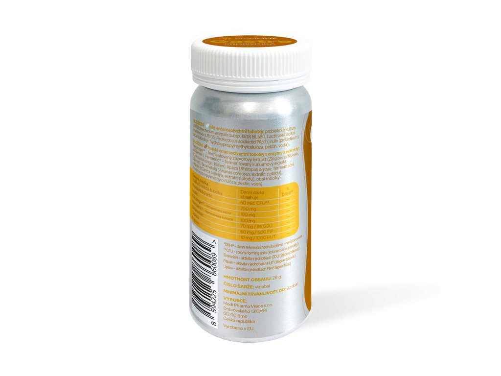 Dvě kapsle pro cílený účinek Probiotika a trávicí enzymy působí ve správný čas a na správném místě.